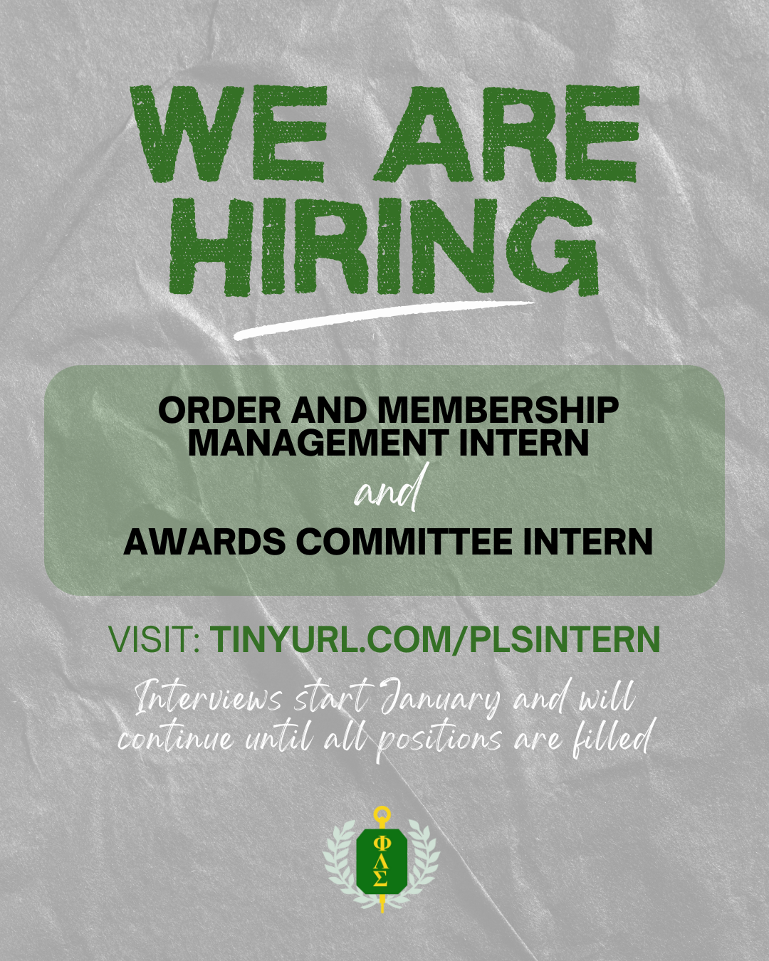 👏 APPLY TODAY to work with Phi Lambda Sigma as the Order and Membership Management Intern or Awards Committee Intern at https://tinyurl.com/PLSIntern! Applications will be reviewed on a rolling basis until the positions are filled. Interviews start in January. Interns will start for training in Ap...Read more